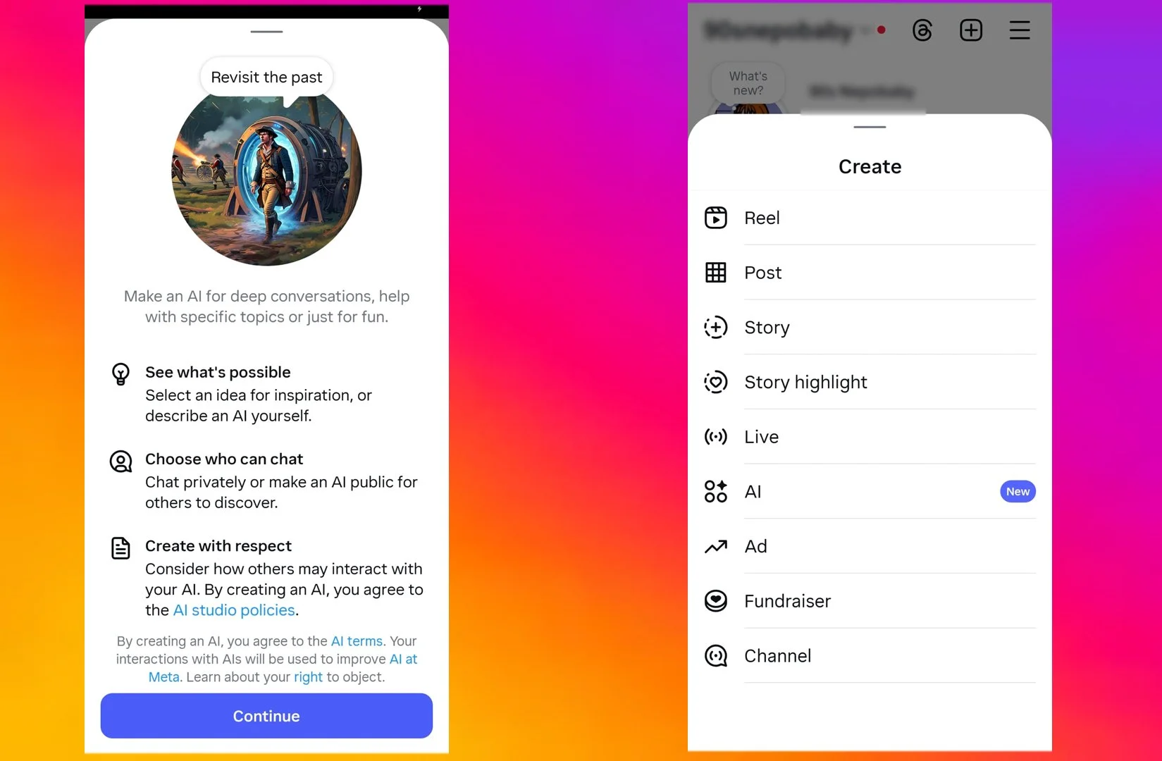Nieuw in het create-menu is ook een opvallende toevoeging: AI. Je vindt deze functie tussen opties als Reel, Story en Live. Wat doet het?